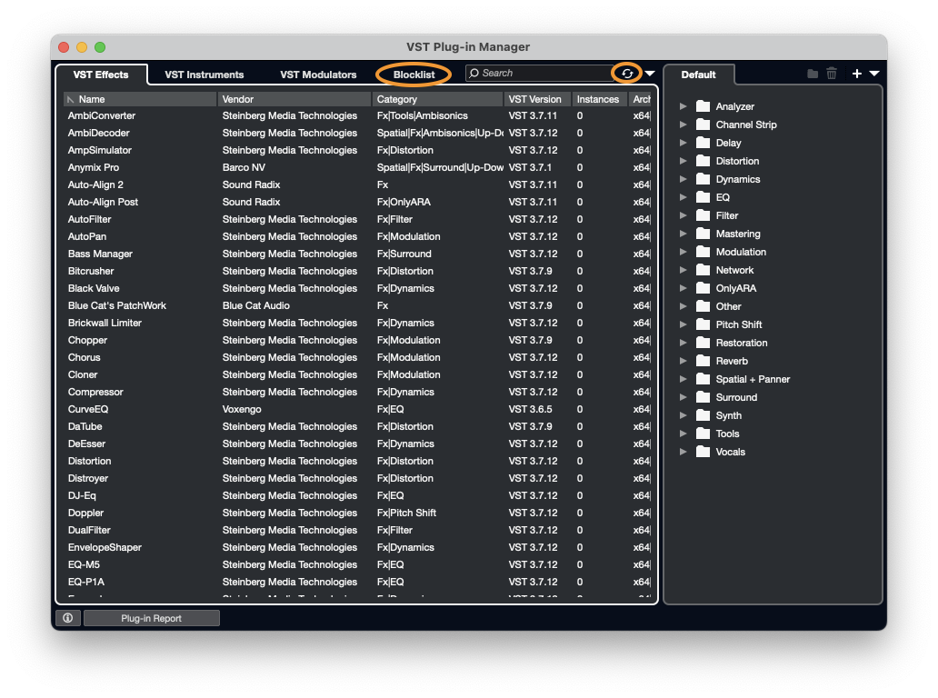 2. Go to the Studio menu -> VST Plug-in Manager, click Reset (X) Icon.